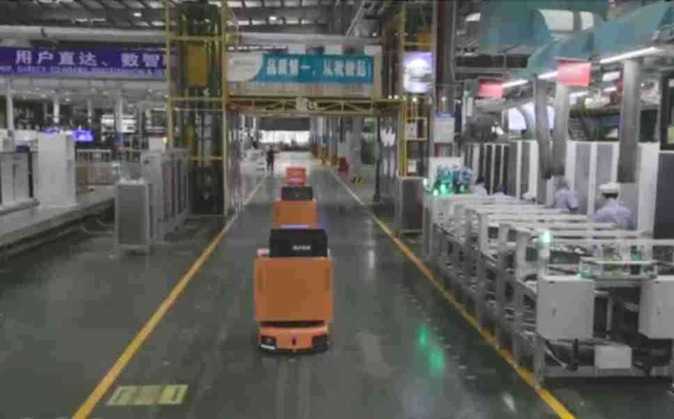 为车载冰箱物流配送打造的智能解决方案,,,,包含产中物流通过潜伏举升AMR搬运至线边,,产后成品物流智能仓储,,,,流程包含产中物流智能齐套入库,,线边安灯叫料AMR智能配送至线边,,成品入库、、、、出库,,,,通过无人堆高车机器人,,,,智能仓储管理替代人工作业管理,,,,实现更高存储、、、更高效率、、、、更具柔性化的解决方案。。。